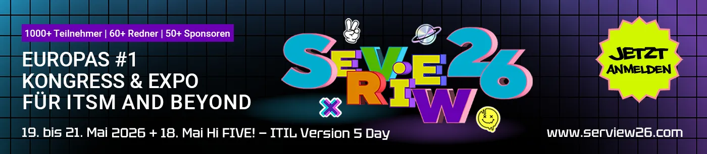 Die SERVIEW26 ist Europas führender Kongress und Expo für Service Management and beyond. Seit 2003 bringt sie Fach und Führungskräfte aus IT und Business zusammen, die Serviceorganisationen aktiv gestalten und gezielt weiterentwickeln.